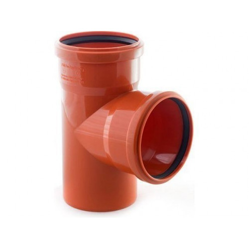 Тройник канализационный для трубы диаметром 160 мм. Имеет выход под трубу диаметром 110 мм под углом 87 градусов. Применяется при монтаже систем наружной канализации.