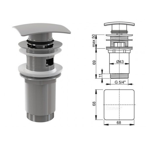 Водослив для умывальника click/clack 5/4 цельнометаллический с квадратной заглушкой ALCAPLAST (A393) предназначен для раковин с переливом.