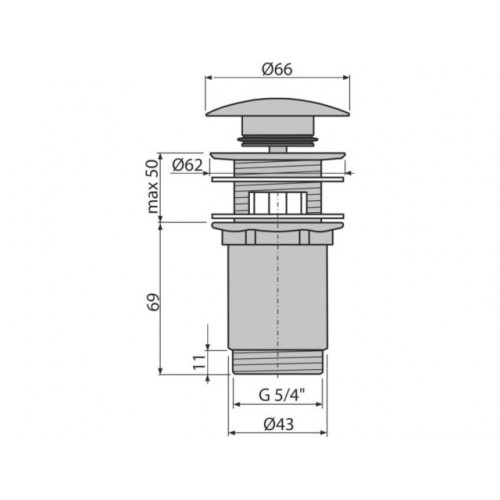 Донный клапан для умывальника click/clack 5/4", цельнометаллический с переливом и большой заглушкой