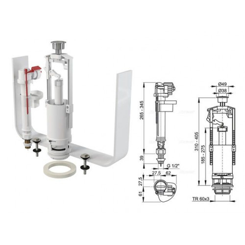 Конструкция позволяет регулировать высоту механизма в зависимости от высоты бачка,