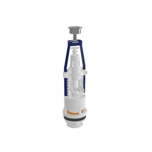 Одинарный слив. Кнопка пластиковая, хромированная, кнопка фиксирует крышку бачка.