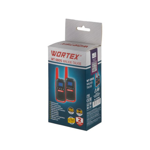 1323986 Портативная радиостанция WORTEX WT 0805 в кор. (комплект 2 шт.) SET, PMR (446 МГц), 0,5 Вт, 2x1,5 Ач