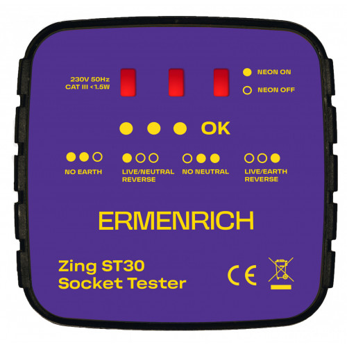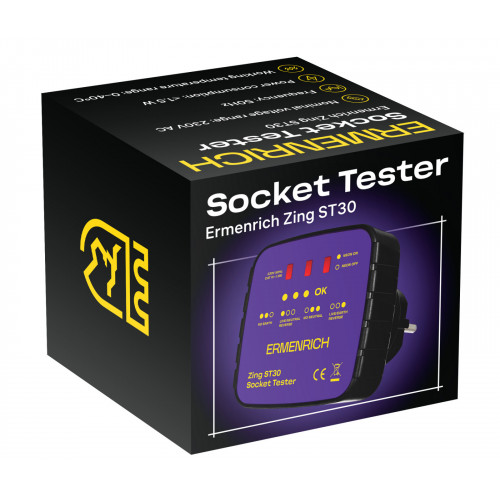 Тестер розетки Ermenrich Zing ST30 (50Гц, 230В, класс перенапряжения III 300В, фиолетовый)