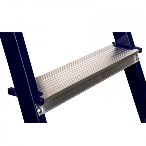 Тетивы стремянки стальной выполнены из прочного стального профиля, защищенного от коррозии эпоксидной порошковой эмалью. Задняя и передняя нога соединены между собой. Рабочая площадка выполнена из оцинкованной стали. Ступени имеют рифленую поверхность и изготовлены из высокопрочного алюминиевого профиля. Башмаки изготовлены из высокопрочного пластика. Стремянка в рабочем положении надежно фиксируется рабочей площадкой, а начиная с пятиступенчатой и выше. страховочными ремнями. Количество ступеней от 3-х до 10-и. Стремянка стальная серии М предназначена для проведения различных видов работ на высоте до 4 м как в быту, так и на производстве.
