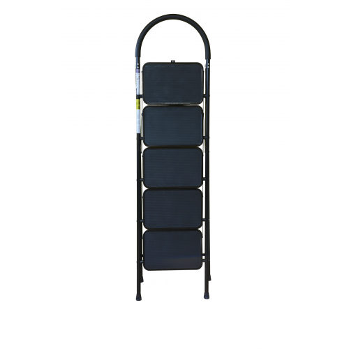 Тетива передней ноги, задняя нога и ступени выполнены из стального профиля, защищенного от коррозии порошковой краской. Задняя и передняя ноги соединены между собой планками. Ступени с пластиковыми вставками по всей площаде, с рифлением. Башмаки изготовлены из высокопрочного пластика. Стремянка в рабочем положении должна быть полностью раскрыта, верхняя ступень плотно лежать на трубке задней ноги.