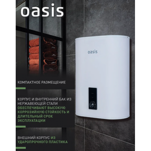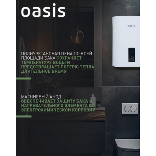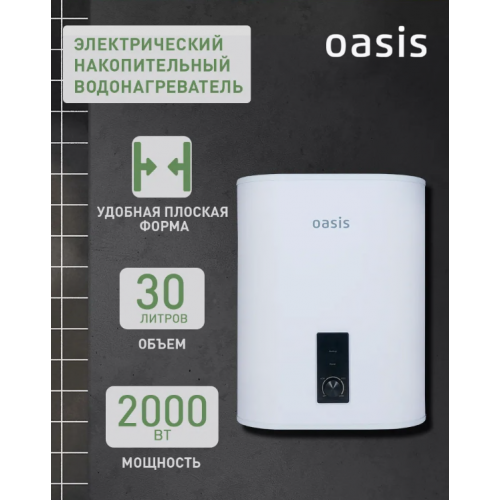 Водонагреватель накопит. Oasis 30VZ (2кВт, 30л, медный ТЭН, верт., магниевый анод, УЗО, антизамерз)