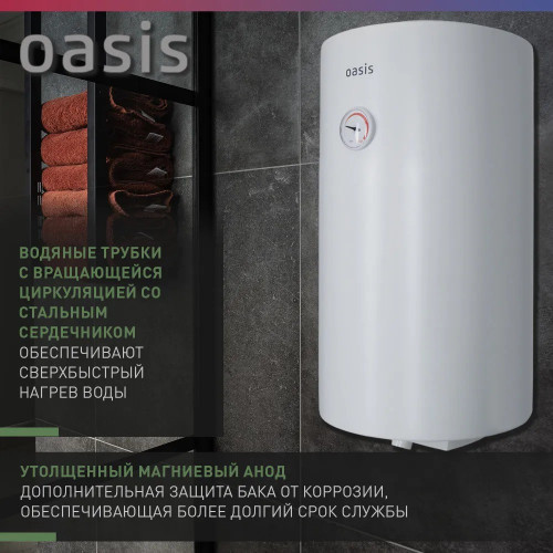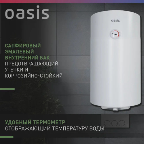 Водонагреватель накопит. Oasis SV-50 (сухой ТЭН, 50л, 1,6кВт, КПД 90%, верт., эмаль, УЗО, 20мм)