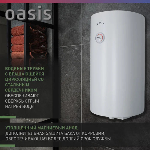 Водонагреватель накопит. Oasis SV-80 (сухой ТЭН, 80л, 1,6кВт, КПД 90%, верт., эмаль, УЗО, 20мм)