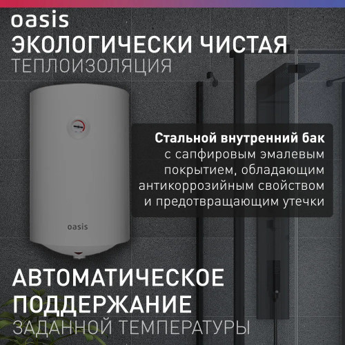 Водонагреватель накопит. Oasis VL-30L (1500Вт, 30л, УЗО, медный ТЭН, до 48ч, предохр. клапан, эмаль)