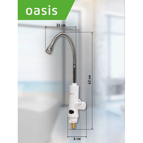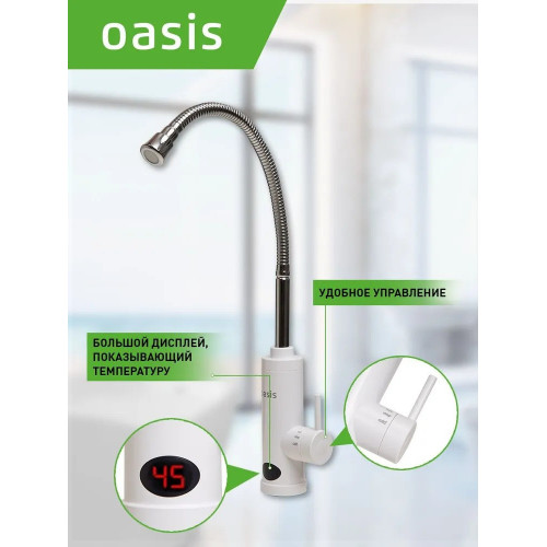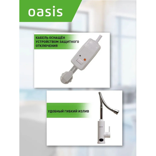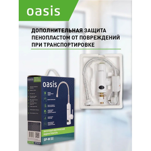 Водонагреватель проточный Oasis GP-W (3,3кВт, 1,2", 6бар, гибкий излив, дисплей, УЗО)