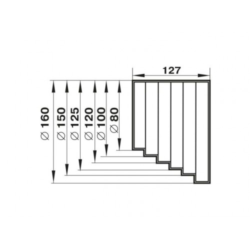Корпус подрезается для получения необходимого диаметра. Присоединительные диаметры: 80-100-120-125-150-160 мм.