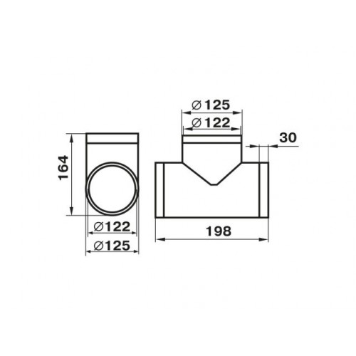 Тройник позволяет соединить 3 воздуховода одного диаметра под углом 90°.
