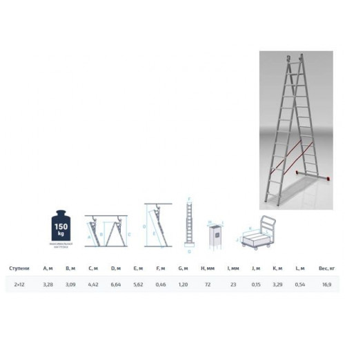 Лестница алюм. 2-х секц. 309/562 2х12 ступ. 16,9 кг NV5220 Новая Высота