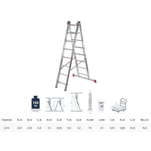 Лестница алюм. 2-х секц. 358/666/380см 2х14 ступ., 16кг NV3220 Новая Высота