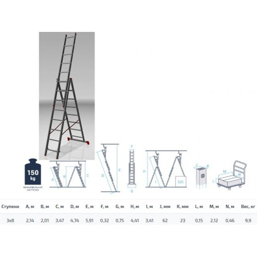 Лестница алюм. 3-х секц. 201/474/214см 3х8 ступ., 9,9кг PRO STARTUL (ST9944-08)