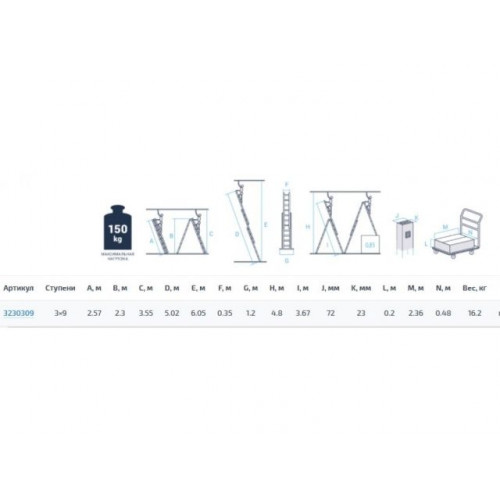 Лестница алюм. 3-х секц. 236/562/250 см 3х9 ступ. 15,9 кг NV3230 Новая Высота