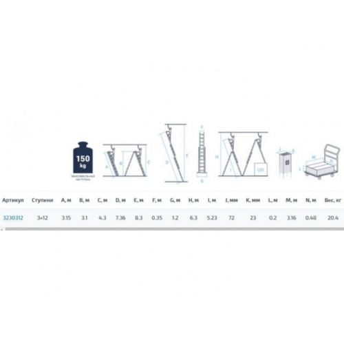 Лестница алюм. 3-х секц. 309/796/328 см 3х12 ступ. 20,2кг NV3230 Новая Высота