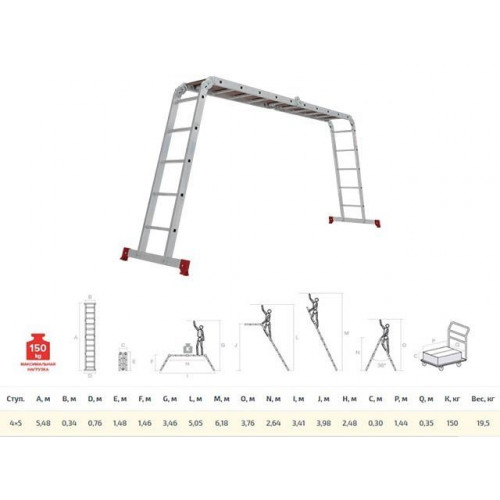 Лестница алюм. многофункц. трансформер 4х5 ступ. с настилом, 19.9кг NV2330 Новая высота