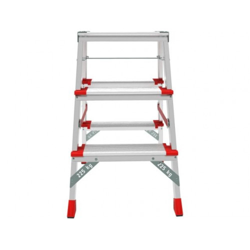 Ориентация ступеней на обе стороны позволяет работать, не переставляя стремянку и тем самым экономя время