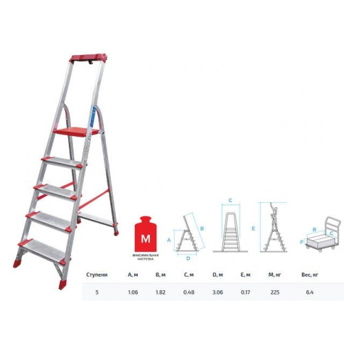 Лестница-стремянка алюм. проф. 107 см 5 ступ. 6,5кг NV3118 Новая Высота