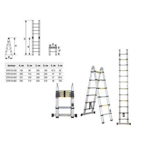 Лестница телескопическая 2-х секц. алюм. 209/440см, 2х7 ступ. 15кг STARTUL (ST9733-044)