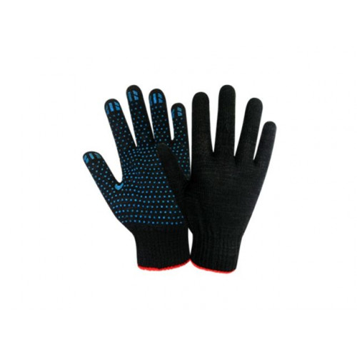 Перчатки рабочие трикотажные х/б черные, 10 класс, с ПВХ покрытием "Точка", 4 нити, 116 текс, х-нить, Ми