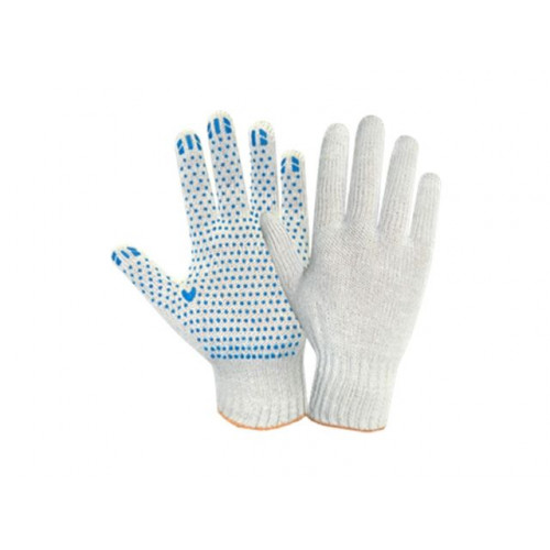 Перчатки рабочие трикотажные х/б белые, с ПВХ покрытием "Точка", 3 нити, 116 текс, х-нить, Ми
