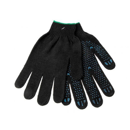 Перчатки рабочие трикотажные х/б черные, 10 класс, с ПВХ покрытием "Точка", 4 нити, 116 текс, х-нить, Ми