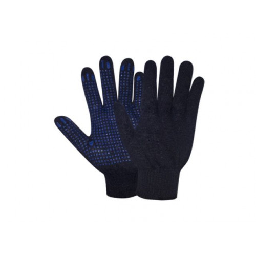 Перчатки рабочие трикотажные х/б черные, с ПВХ покрытием "Точка", 4 нити, 150 текс, х-нить, Ми
