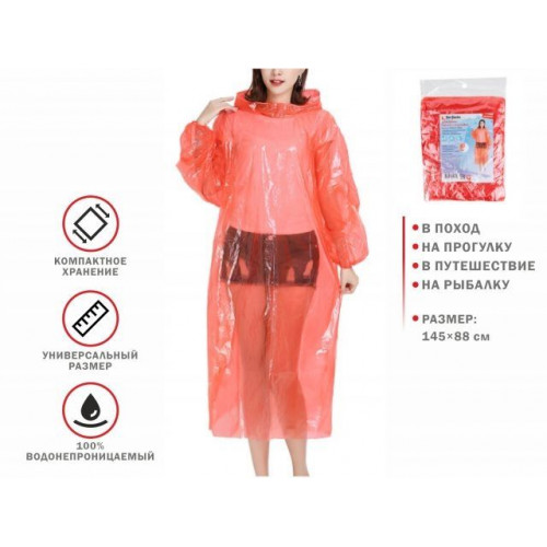 Дождевик-пончо c рукавами, красный, PERFECTO LINEA