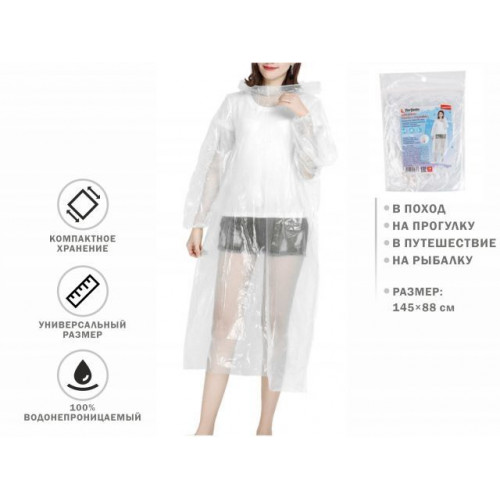 Дождевик-пончо c рукавами, прозрачный, PERFECTO LINEA