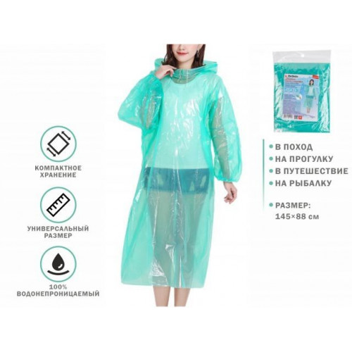 Дождевик-пончо c рукавами, зеленый, PERFECTO LINEA