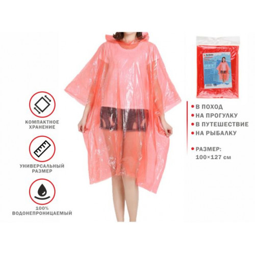 Дождевик-пончо, красный, PERFECTO LINEA