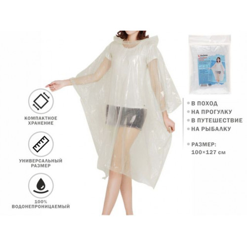 Дождевик-пончо, прозрачный, PERFECTO LINEA