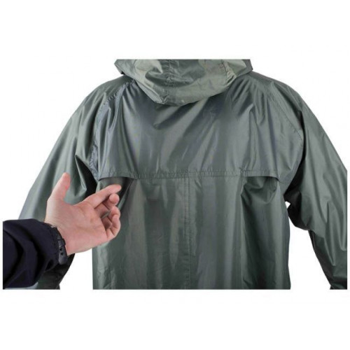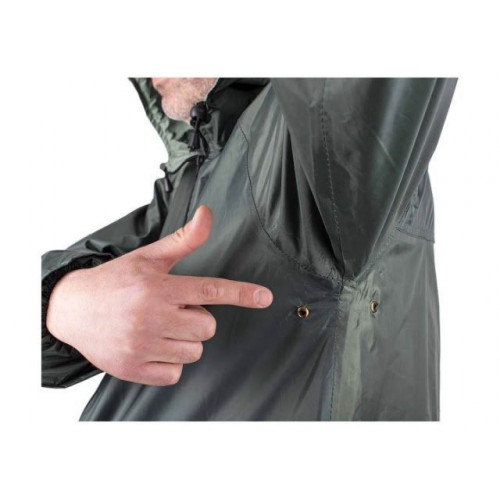 Плащ прямого силуэта с рукавами реглан. Притачной капюшон со шнуром, состоит из 3-х частей и более эргономичен. Застёжка на витой, более надёжной молнии и внутренней ветрозащитной планкой, что гарантирует высокую защиту от влаги. Проклеенные швы 100% защищают от протечек. Манжеты на рукавах это дополнительная защита от протекания при активном движении. Вентиляционные отверстия в области подмышечных впадин и кокетки комфортно выводят влагу из внутреннего пространства. Наличие шлицы в плаще придаёт свободу движения.