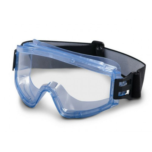 Очки с непрямой вентиляцией с панорамным защитным бесцветным стеклом из поликарбоната (РС super) с незапотевающим покрытием изнутри, снаружи устойчивым к истиранию и царапанию.