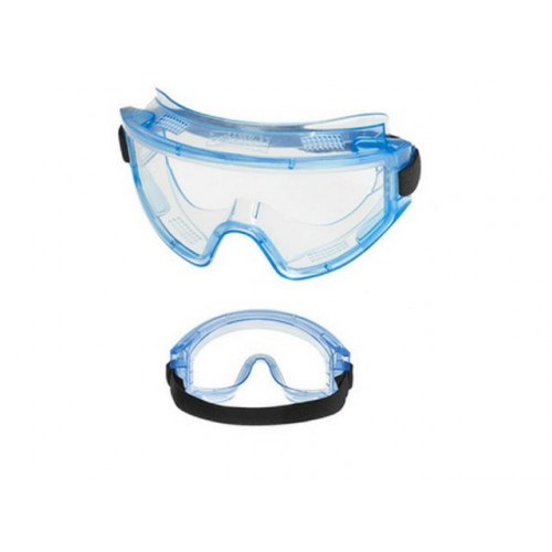 Очки с прямой вентиляцией с панорамным защитным бесцветным стеклом из поликарбоната (РС super) с незапотевающим покрытием изнутри, снаружи устойчивым к истиранию и царапанию.