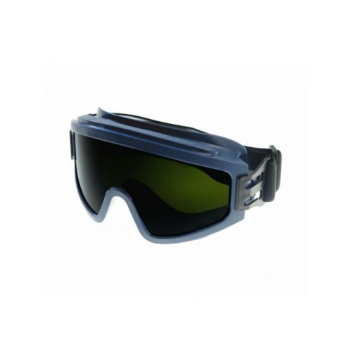 Очки с непрямой вентиляцией с панорамным защитным стеклом-светофильтром тёмно-зеленого цвета из поликарбоната (РС StrongGlass) с влагостойким, двусторонним суперпрочным, твердым и одновременно незапотевающим покрытием (без потери свойств от времени). Обеспечивают защиту глаз от высокоскоростных летящих частиц со среднеэнергетическим ударом, абразива, капель жидкостей (в т.ч. химических растворов), УФ-излучения, повышенная защита от искр и брызг расплавленного металла и высокой температуры.