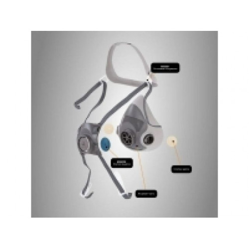 - система регулировки (полумаска перемещается по стропам оголовья, что позволяет отнимать её от лица без снятия в т.ч. других средств защиты, например, каски),