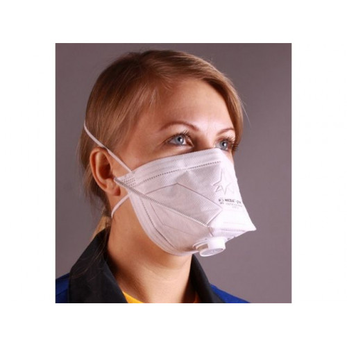 Складной респиратор из нетканого фильтрующего материала, имеющий эластичные ленты оголовья, носовой зажим и клапан выдоха, который обеспечивает понижение влажности и температуры в подмасочном пространстве, создавая комфортные условия для дыхания.
