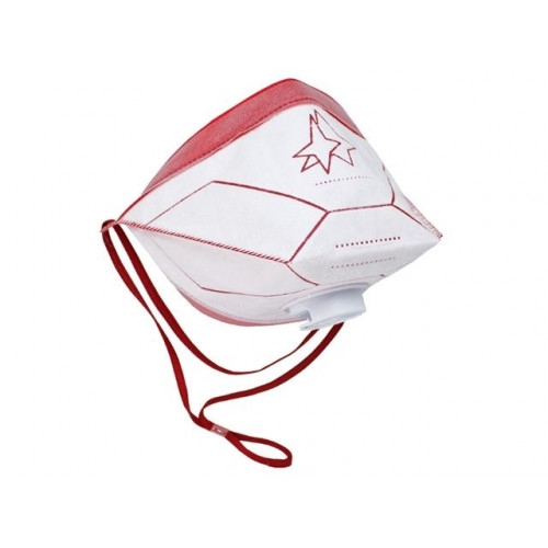Складной фильтрующий респиратор FFP3 с регулируемыми лентами оголовья. Клапан выдоха направлен вниз, он понижает уровень влажности и температуры в подмасочном пространстве.