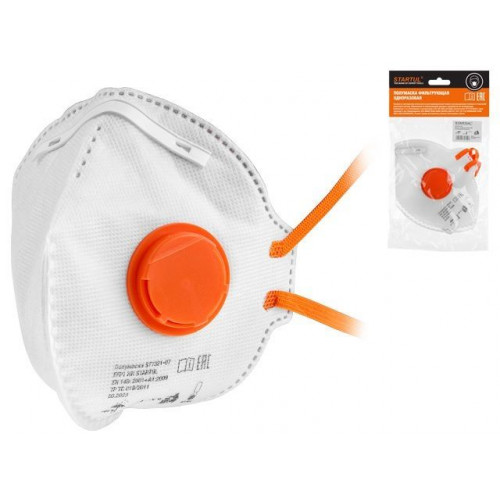 Полумаска фильтрующая STARTUL с клапаном выдоха, легкая и мягкая из высокоэффективного фильтрующего материала обеспечивает эффективную фильтрацию при минимальном сопротивлении дыханию.