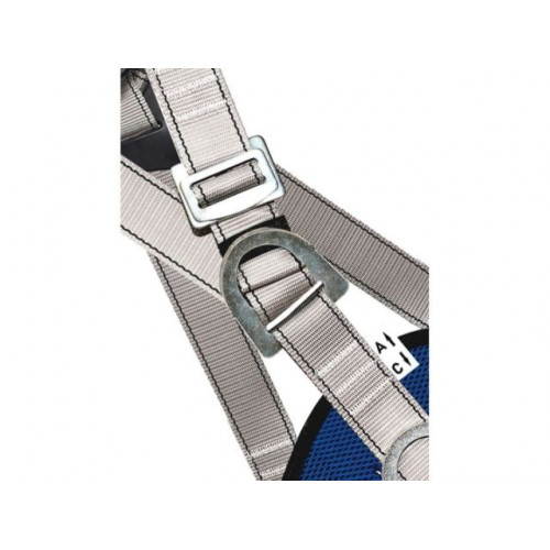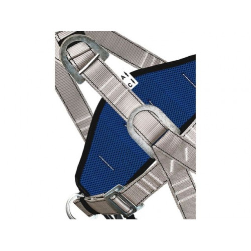 Привязь оснащена двумя D-кольцами расположенными на поясе – для удержания и позиционирования, грудной точкой – для удержания и страховки, и брюшной точкой крепления – для работы в системах канатного доступа.