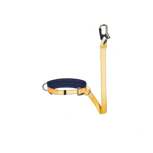 Состоит из ремня с пряжкой, кушака и двух D-колец для присоединения стропа. Удерживающая система оснащена стропом из полиэфирной ленты (строп А) с монтажным карабином.