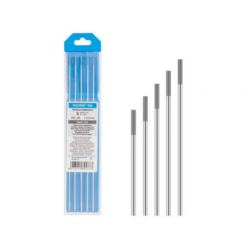 Электрод вольфрамовый серый WC-20, Ф 2,0 мм (набор 5 шт) SOLARIS