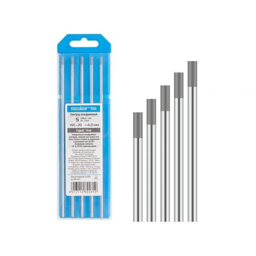 Электрод вольфрамовый серый WC-20, Ф 4,0 мм (набор 5 шт) SOLARIS