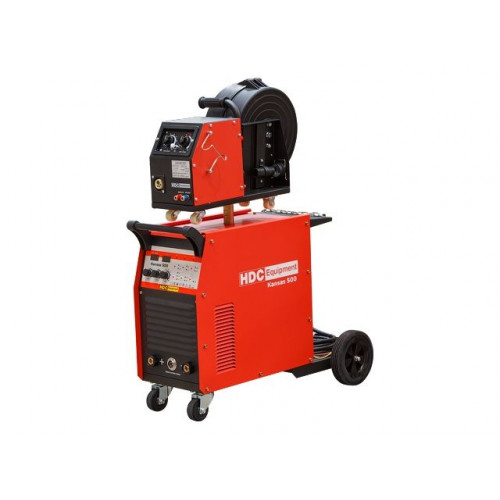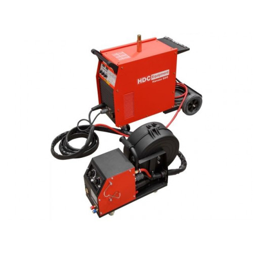 Сварочный аппарат инверторного типа для профессионального использования. Устройство можно использовать как в режиме полуавтоматической сварки, так и в режиме ручной сварки электродом. Аппарат оснащен выносным модулем подачи проволоки с 4-роликовым механизмом и держателем катушек диаметром до 300 мм и массой проволоки до 15 кг.