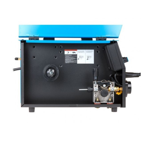 Аппарат оснащен евроразъемом для горелки, возможностью смены полярности для сварки проволокой без газа (FLUX).