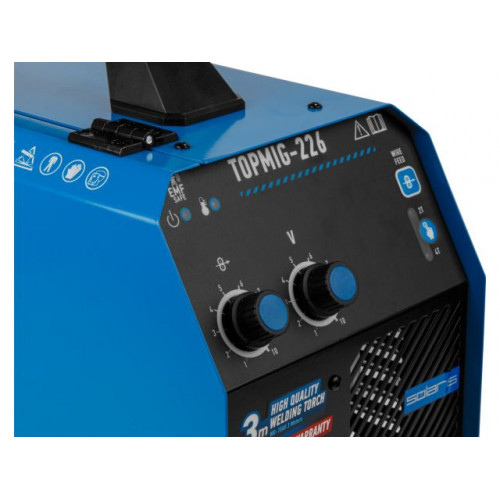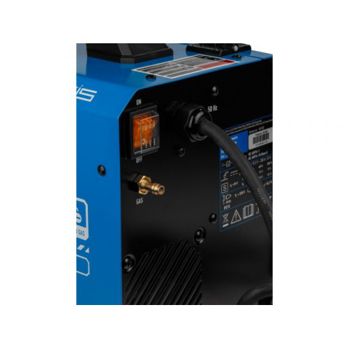 Аппарат оснащен евроразъемом для горелки, возможностью смены полярности для сварки проволокой без газа (FLUX),