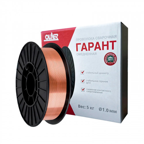 Технические характеристики Проволока OLIVER Гарант 1,0 мм Св-08Г2С-О, омедненная, диаметр кассеты 200 мм (5 кг)
